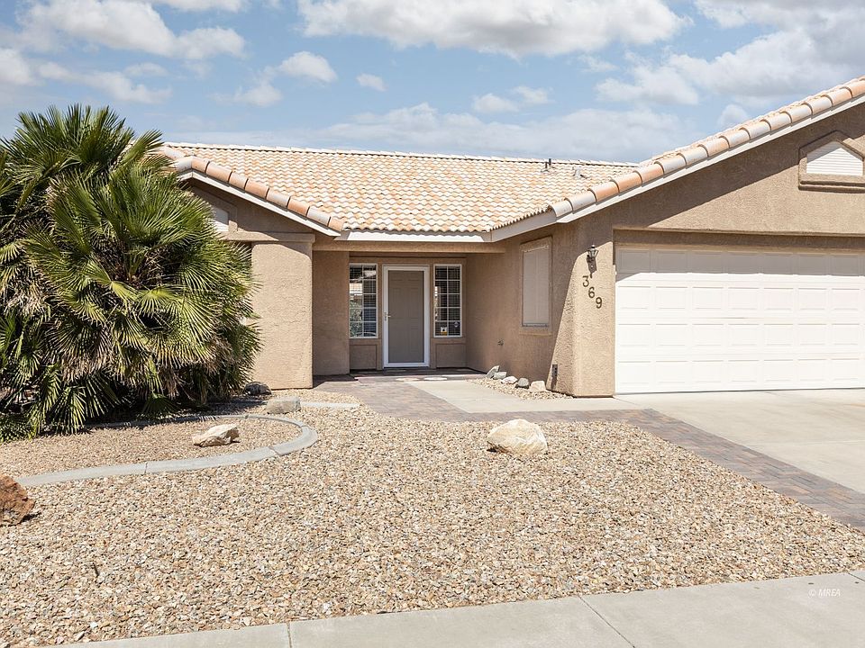 Beautiful front courtyard entry. Tile flooring in the kitchen, living room, dining area, bathrooms and hallway. Both bedrooms feature wood laminate floors. Kitchen boasts granite counters and newer stainless steel appliances. The entire townhome has new interior designer paint. Main bedroom is spacious and main bathroom features a tiled shower. Attention to detail in every room! Large covered patio with a new roof and pull down sun screens. Big backyard with pavers and low yard maintenance. The two car garage features a painted floor and walls with insulated panels in the garage door. A great townhome for full time or part time living! Definitely a must see!