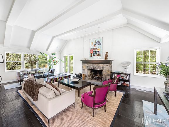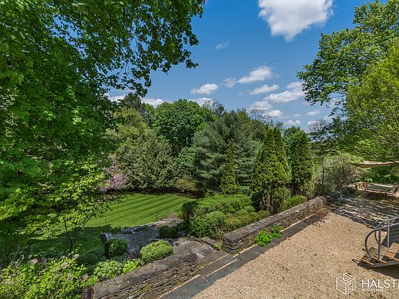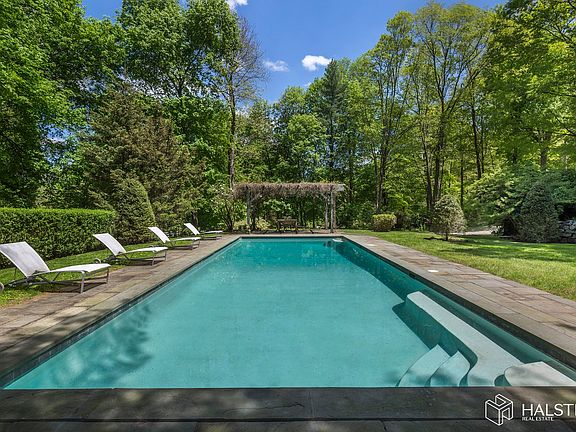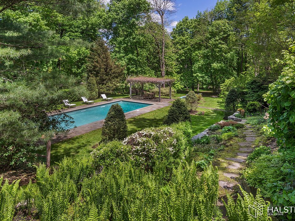 Stunning estate with pool, meditation garden on and 4 landscaped acres. High-end interiors include: Boffi stainless steel kitchen, Flos lighting, limestone and hardwood floors, two stone fireplaces, 4 bedrooms plus extra room, living room with soaring 14' ceilings, 4.5 bathrooms, formal dining, separate office over garage and jacuzzi with outside fireplace, 3 cara garage. Live in the lap of luxury on a quiet street in estate section just 5 minutes away from two trains to NYC and three adorable villages. Stunning stone walls. Available furnished or unfurnished. A must see!