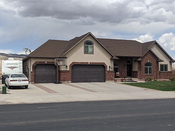 Come see this beautiful home that is located in a premier location. Home has a formal office, 6 bedrooms, 3 full and 1 half baths, and 3 living spaces. There is a bonus room above the garage with a separate 10’ X 13’ toy storage room. Kitchen is huge and a cook’s dream! Large island, tons of cabinets all with soft close doors and drawers, built in china hutch, double ovens and a Wolf 5 burner cooktop and exhaust hood. Gas fireplaces in the main floor living room and master bedroom. Laundry on main level. There is a large game room in the basement with outside entrance. Walk in closets in the master and the oversized bedroom in the basement and built in organizers in all closets. The home faces South and has a beautiful view of Monroe mountain and an oversized covered patio with built in countertops on the North side for entertaining. Mature landscaping with fully automated sprinklers including drip-line systems for all flowerbeds and the garden spot. Oversized garage with 4 car parking. 15 foot wide cement RV parking next to garage and a separate gravel RV parking at back of property. Tankless on-demand water heater put in two years ago and a new dishwasher last month. Large storage room with built in shelves and a separate large cold storage room in basement.