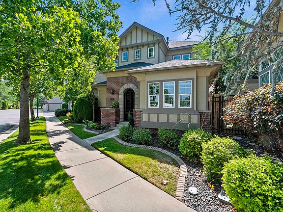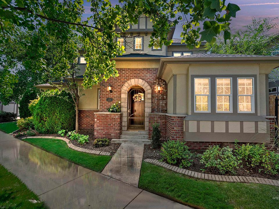 Welcome to this rare corner lot home in one of Eagle's most desirable downtown locations. This home is an urban sanctuary, perfectly positioned for you to walk to the farmers market, enjoy dinner at one of the local bistros, take a peaceful stroll through Heritage Park or bike down to the Boise River Greenbelt. The private, east-facing patio is a peaceful retreat, enclosed by a charming brick wall. Inside, the unique architectural design and high-end finishes create a welcoming and sophisticated atmosphere. Ascend to your private quarters, where the primary suite provides a custom, elegant escape from the world. With the HOA handling exterior maintenance, your weekends are free to enjoy the best of downtown living. Your new home awaits!