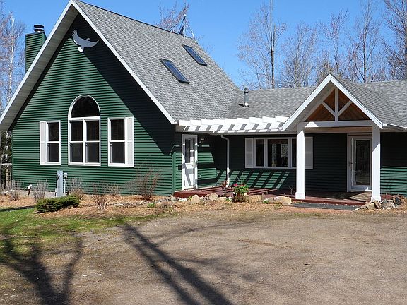 Impressive country home on 5 private acres including deeded lake access to the beautiful undeveloped Eagle Lake. Home features new LP Smart siding, new dining area bay windows, new carpet, tongue and groove cedar living room with a Harmen pellet stove. Attractive kitchen with newer Dishwasher and glass top Range, refrigerator and microwave. Stunning vaulted ceiling in great room with floor to ceiling field stone fireplace, and a second level loft with French doors to a walk out deck. The downstairs features in-floor heating, washer and dryer, work bench area with cabinetry and walk out French doors. Outside you will find a pergola covered front entry, spacious rear sun deck for entertaining and quiet relaxation while also enjoying the beautiful wildlife. Home also comes with an extremely unique and fun cord wood building with electricity and wood burning stove which is currently used for a quiet retreat. Home has gorgeous landscaping, grape vineyard and small greenhouse. Includes a 2 car garage 26 x 26 and separate 1car garage. Home is located only approximately 1 mile from Pelican Lake! * Acres: 5.06 * New Harmen Pellet Stove * Wood burning floor to ceiling fieldstone fireplace * New whole house water system and water softener * New seamless gutters * New glass top Range * New Samsung Dishwasher * 2 bedrooms with loft/sleeping area * 1-1/2 Bathrooms * Main bathroom includes ~ New shower/tub unit, new vanity, countertop, tiled floors, sink and toilet. * Includes Washer and Dryer * Conventional Septic System Some furnishings available for sale separately with purchase of home. Feel free to call 715-499-0877 with any questions.