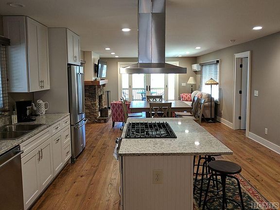 WALK-TO-TOWN/CREEKSIDE COTTAGE! Wonderful 3BR/3.5BA cottage that was beautifully and completely rebuilt in 2016 - new roof/electrical/plumbing/HVAC/etc. Open floorplan on main level with kitchen transitioning to dining and living area with wood burning (gas starter) fireplace. French doors connect upper living area with screened porch overlooking creek. Master/kitchen/laundry/screened porch on main level, 2 suites on lower level with walk-out to covered porch and lawn with stone firepit for enjoying the cool mountain evenings. Established landscaping and beautiful stonework. City water/sewer/trash. Adjacent to Bascom & Highlands Greenway Trail. Great rental history with excellent ratings and loyal guests.