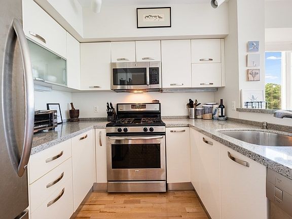 Enjoy beautiful treetop views of Cambridge in this gorgeous 2 bed, 1.5 bath, southeast facing corner unit overflowing with natural light. Experience all the advantages of being in a newer boutique elevator building just steps away from all that Central Square has to offer. This home showcases an open concept kitchen, living, and dining rooms perfect for adding your own personal touch and entertaining family and friends. Other features include nice hardwood floors, stainless steel appliances, central air, in-unit washer/dryer, and 1 garage parking spot. The building is Green certified, energy efficient and also offers a common yard as well as a small exercise room on the penthouse floor and a lovely walk-out deck with city views. Easy access to Harvard Square, Harvard, MIT, The Red Line train, Memorial Drive, restaurants, shops, grocery store and much more!