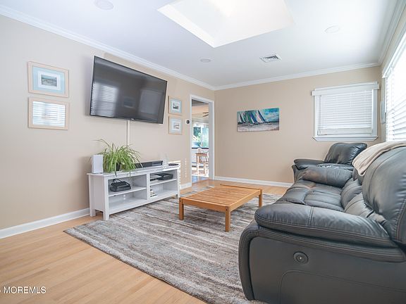 Charming Lake Riviera ranch with 2 beds, 1 bath, and a finished basement with 3 bonus rooms plus laundry/storage. Bright living room with skylight, updated kitchen with granite counters and subway tile backsplash. Refinished hardwood floors (2023). Newer stove, oven, refrigerator, hot water heater (2023), roof, electric, and HVAC. Pull-down attic for storage. Enjoy a spacious backyard with large deck, outdoor shower, and 1-car garage. Move-in ready!