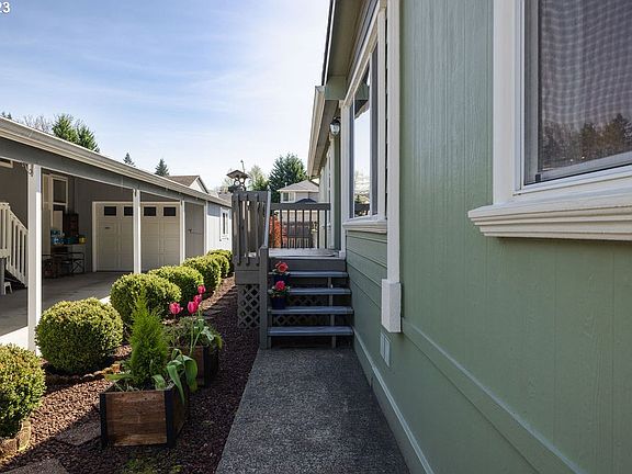 BEAUTIFULLY UPDATED MANUFACTURED HOME IN GREAT 55+ PARK. Welcome to your dream manufactured home located in a secure, gated park! Three bedrooms and two baths, 1512 square feet. The living room features vaulted ceilings and engineered bamboo textured floors. The dining room opens to both the living room and the kitchen. The remodeled kitchen showcases upgraded stainless steel appliances, an extra-large stainless sink, a skylight, and new countertops. The beautiful hardwood cabinets complete the space, providing ample storage for all your cooking essentials. The primary bedroom offers an attached office and bathroom with a soaking tub and a walk-in shower. The bathrooms and laundry area feature modern luxury vinyl tile. NEW roof in 2019, The exterior was painted 2 years ago. The home also features a NEW Lennox furnace and heat pump with a home air purification system, including UV light ionization, providing clean air. The water recirculator is an added bonus, reducing water waste. Oversized single-car garage, with a convenient shop area for your DIY projects. The large fenced backyard is a beautiful retreat, featuring stunning roses, flowers, and shrubs, creating a picturesque setting for entertaining or gardening.Don't miss out on this incredible opportunity to own this manufactured home in a friendly, gated park, providing the perfect combination of privacy, security, and community. Schedule your showing today!