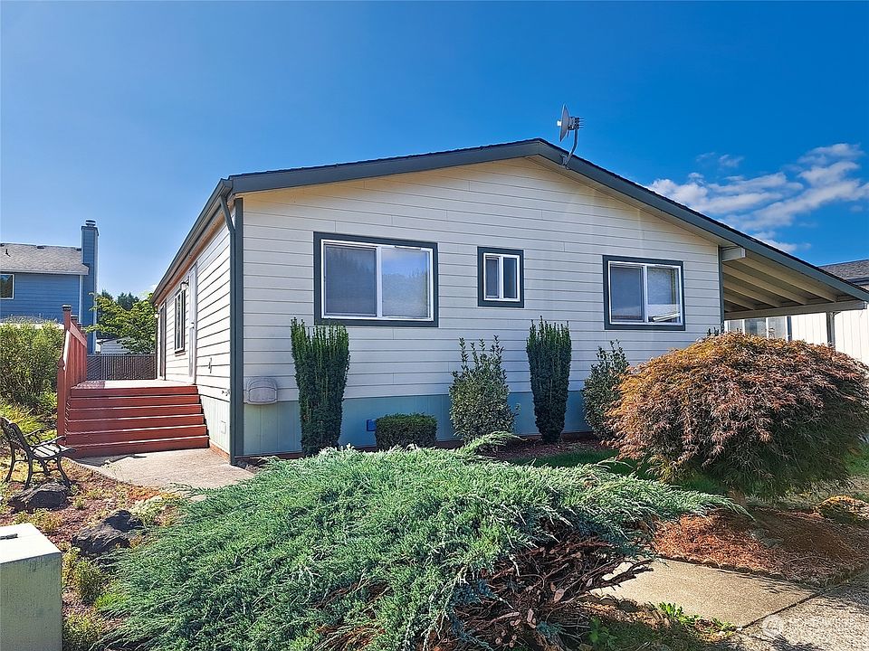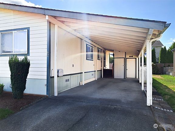 Great open floor plan home in 55+ manufactured home park in Woodland. Spacious 3 bedroom, 2 bath home with partially fenced yard, parking for 2 vehicles plus a storage shed, storage closet, and garden shed. This home is clean and move in ready with a newer roof and siding, and fresh exterior paint. The expensive items have been done which will allow for many years of maintenance free living. Non smoking/pet free home. The primary has a walk in shower and slider to the large deck. Skylights provide natural lighting. All appliances including the washer/dry pass with the sale.
