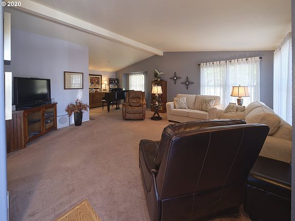 PRICED TO SELL! Beautifully maintained 2 bedroom/2 bath, 1629 sq ft manufactured home. Vaulted ceilings, large master bedroom and an over-sized laundry room. 2nd bedroom has queen sized Murphy bed. Full length car port with storage shed. Well cared for Gated 55+ Community, located just 2 miles to I-5, shopping, city services and parks. One year Home Warranty included. Dining set/hutch, murphy bed, desk and all appliances included.