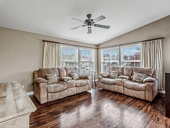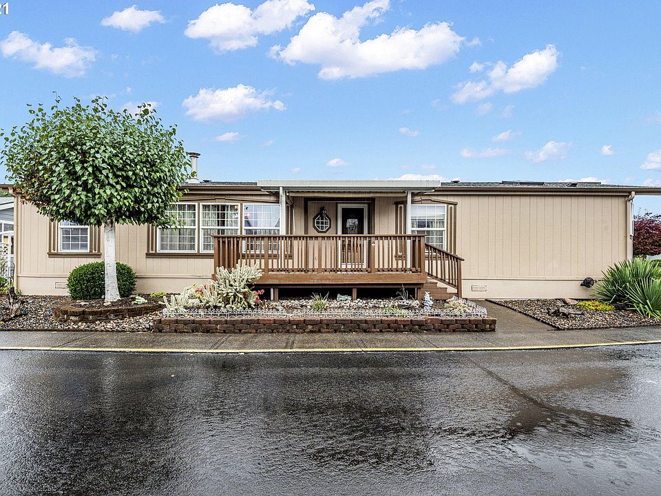 Lovely 1741 sqft, manufactured home waiting for the perfect new owners! This is a well maintained home featuring a spacious, remodeled kitchen with lots of counterspace, vaulted ceilings, comfortable sitting area with a wood-burning fireplace, and a large master bathroom with a walk-in shower. There is covered parking and lots of storage. The lot is beautifully landscaped and has a covered front porch with sun shades! All buyers need to be preapproved before sale will be completed.