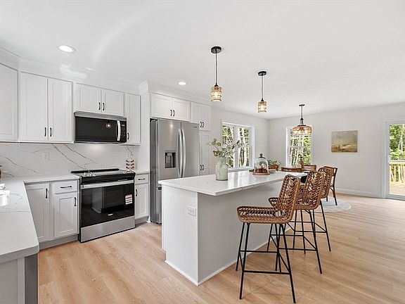 UPGRADED THROUGHOUT - Complete and brand new Colonial nestled off the road on 2.7 acres in a serene corner lot setting. This home features an open concept main floor with a spacious living room, dining area and mudroom. The mudroom has half bath & custom bench. The fully applianced kitchen features quartz countertops AND a matching quartz backsplash as well as Maple cabinetry and an island. From the dining area, you can step out to a 12x14 sun deck overlooking your very private backyard. Upstairs the primary suite offers a tray ceiling, a sitting area,a custom barn door to the walk-in closet plus a tiled walk-in shower, dual vanities. The common full bath and separate laundry room both feature tile flooring. Enjoy the farmers porch with composite decking PLUS central A/C, a walk-out basement that could be future living area, an attached 2-car garage. Doyle Estates is a neighborhood of new homes. QUICK CLOSING AVAILABLE. No HOA fee.