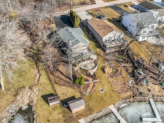 This all brick Walk-out Ranch home has been completely remodeled insight & out, including a STUNNING gourmet kitchen w/ maple cabinets, quartz countertops, and new hardwood floors flow throughout the main level. The sun room has been removed and replaced with a massive composite deck w/ a beautiful new patio underneath. The walk-out basement boasts a wet bar complete w/ a dishwasher and ice maker, the 3rd full bathroom, under the stair pull out storage, a driftwood stone facade fireplace w/ gas logs, and the laundry room. Desirable lake location as it's within the no wake zone so kids can swim safely, and your sea wall doesn't get as much erosion as the main body of the lake does. Flat walkable grassy area lakeside w/ multiple levels of exterior entertaining options, plus a brick shed! All major components have been replaced as well including; roof, furnace, A/C, hot water heater, water softener, added whole house water filtration system, add heater in the garage, ALL new driveway + garage doors, GENERAC whole house generator, & so much more!