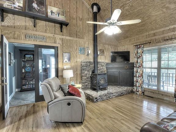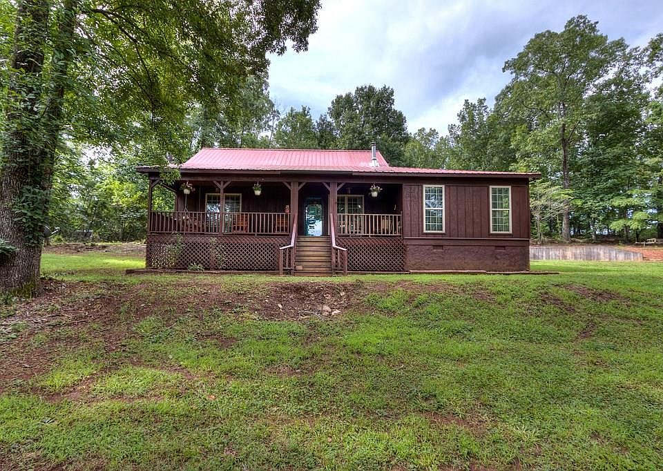 This private home features lots of glowing wood, fenced pasture, long range mountain views, and a big front porch! Great floor plan with 3BR/2BA, dine-in kitchen, and open living room with wood burning stove. Split bedroom plan with large master on main floor, tile shower, and walk-in closet. Plus, carpet in bedrooms, hardwood in main living space, and tile in both bathrooms & kitchen. Long shared driveway, attached carport, detached carport/workshop, mature hardwoods, and plenty of land! A gorgeous 14.5 +/- acre pasture/wooded property between Cave spring & Cedartown.