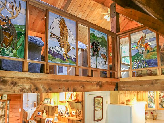 The surprises just continue as you enter the home. Custom designed stain glass features welcome you as you enter the front door. The kitchen also features artistic stained glass cabinet doors that make the home one-of-a-kind.
