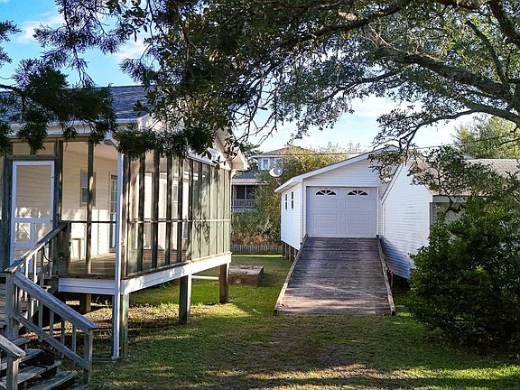 The home is tucked into a lot surrounded by mature trees and stunning hydrangeas that provide lots of privacy and shade. There's also a over-sized raised garage for keeping your vehicle safe from storms and the possibility exists to convert it into a second living space, with views of the lighthouse.