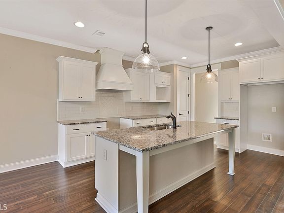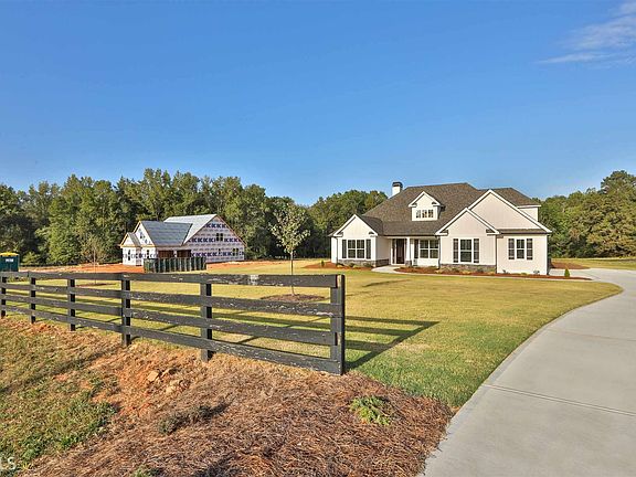 New Leaf Homes - The Rivermist floorplan with 3887 covered square feet in this spacious open home. Beautiful home inside and out ! Large covered back porch for entertaining with fan overlooks 1 acre of private backyard & wooded yard. Immediately you will notice & Feel the spaciousness that the high ceilings,windows galore, & 8' doors give to the living space . 5" hardwoods in main living areas. Beautiful bright kitchen with white cabinets, large island and granite countertops. Range with vent cabinet and stainless appliances. Owner's Suite features a large soaking tub, separate shower, double vanities with venetian marble plus a large walk-in closet. Expanded 2 car garage with extra storage. Minutes from Senoia, Peachtree City & Newnan. Come see!