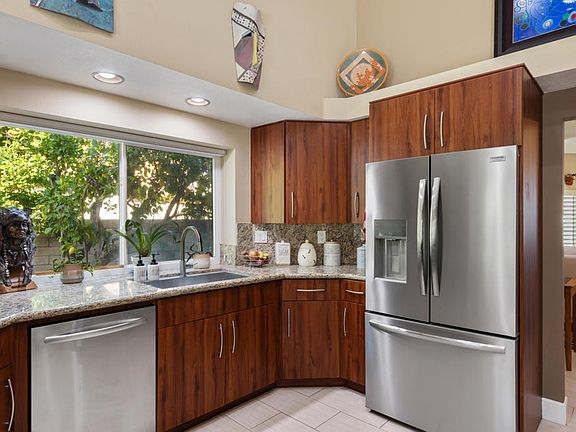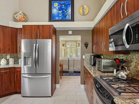 A True and Unique find is what this property has to offer. With OWNED SOLAR PANELS and an oversized lot, this 3 bedroom, 3 1/2 bath home is unlike any other. All stainless-steel appliances, ceramic tile throughout with carpet in the bedrooms. Having guests over? Not a problem. Each room is generous in size. One of which allows access to the side courtyard where you will find a grove of citrus trees. The Master En-Suite has numerous windows that offer views of the pool, natural light and dual sided fireplace where you can enjoy soaking in a hot tub or relaxing from your room. The master bath has dual vanities and a large walk-in closet. Be ready to come and relax with this Oasis that awaits you. The back has been elevated to the next level with pavers throughout that meander through to a waterfall on the side and a full outdoor kitchen and firepit. Desert Falls Scottish Links Championship Golf Course is rated as one of the top 10 courses by the SCPGA and awarded a 4 -star rating from Golf Digests ''Best Places to Play''! You can choose to pay as you play. Desert Falls Country Club is centrally located in the middle of the valley within walking distance to restaurants and shopping and only a few miles to top entertainment venues. Acrisure Arena, Agua Caliente Spa & Casino, the McCallum Theatre and El Paseo: Galleries, Boutiques, and fine Dining Restaurants are all within just a few minutes' drive. Enjoy Tennis, Pickleball, Fitness Center, 29+ Pools & S