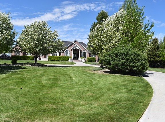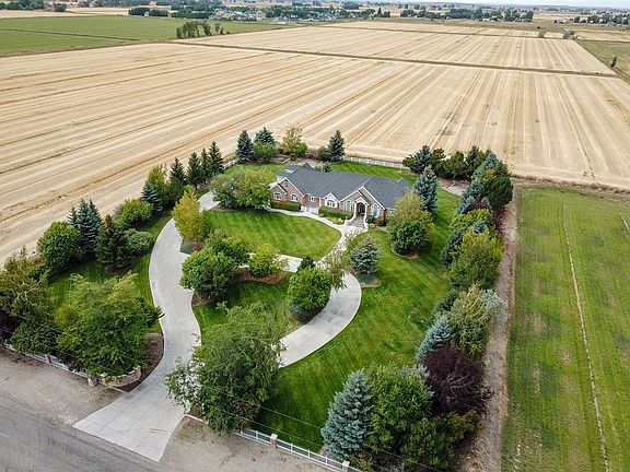 Stunning custom home in Rigby on 1.69 acres! The grand entryway leads you into this sprawling manor to over 5400 square feet of luxury with soaring ceilings, formal dining, formal living, spacious office with beautiful cherry built-ins, and gourmet kitchen with white cabinetry, stainless steel appliances, and granite counter tops. The main level features a gourmet kitchen with breakfast nook and access to the large balcony overlooking the breathtaking yard, light and bright music or formal sitting room, a huge office with gorgeous custom built-ins, family room with beautiful built ins complete with gas fireplace, tons of windows, formal dining area, main floor master suite with fantastic views from the balcony, vaulted ceilings, large jetted tub with separate shower, double vanity and enormous master closet, and another bedroom and 1/2 bath and huge laundry room with soak sink and built ins/ lots of counter space, mudroom with built in lockers. On the lower level you'll find a sprawling family room, walk out basement, 3 bedrooms, 2 full bathrooms, huge cold & dry storage rooms and laundry area. Bonus room over the garage! This exquisitely landscaped oasis is just 1 mile north of the high school and close to town but yet far enough away to enjoy your privacy. Ask about trades!