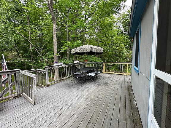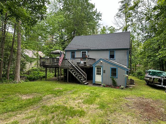 Charming and quaint Chalet style home with deeded rights to serene Horn Pond in Acton ME. The location is ideal for commuting north or south on Rt #16 in Wakefield as it's merely 4 miles away! 50 min to Portsmouth or North Conway. Home offers 2 bedrooms and a loft for guests or the office. Knotty Pine cathedral ceiling in the open kitchen/living room for a quaint cabin feel. The full walk out basement offers much potential to finish for additional living area as most sheet rock is in place. The pellet stove is in the basement as well as an unused chimney for a wood stove hook up. New roof in the fall of 2023! The private shared beach is about a 3-minute walk away - gorgeous sandy swimming! There is also a private shared boat launch - launch your watercraft and go fishing. Kayak, swim, fish, ice skate, ice fish in winter or just sit back on one of the decks of the home and listen to the loons ~ Furnishings included. Seller is loooking for reasonable offers!