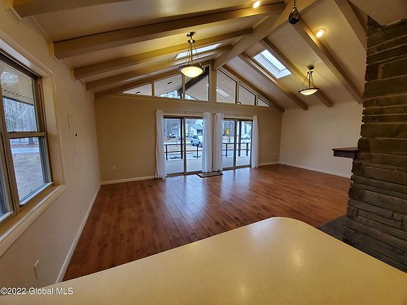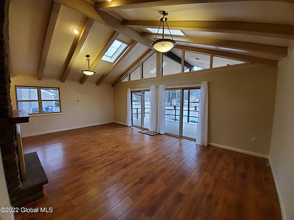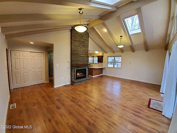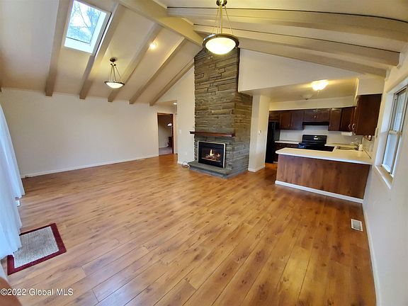 Lovely 2 Bedroom, 1 Bath Chalet style home in a great location, minutes to downtown Saratoga Springs. Great room with cathedral ceiling and skylights; gas fireplace, and a family room with gas stove for additional coziness. Huge front deck and private back yard, two car garage with openers. Saratoga schools. Landlord provides lawn care. One pet (dog or cat) allowed for an additional $50/month. Tenant pays utilities (gas/electric) snow removal, cable/internet and trash service. Rental application and credit check required,