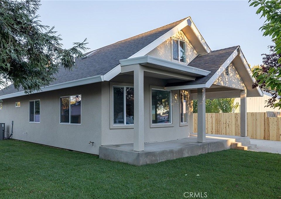 The remodeled and upgraded home is located in the heart of Gridley. This home features four bedrooms and three full bathrooms. Throughout the house, you have LVP luxury vinyl plank, custom-built cabinetry, smooth and imperfect textured walls, recessed lighting with ease and access to turning lights on and off carefully throughout sections of the home, large picturesque dual pane windows, Central Heat and Air. NEW ELECTRICAL AND NEW PLUMBING THROUGHOUT!! The Galley Kitchen features custom hickory cabinets with soft close doors, quartz counters with breakfast bar, TOP OF THE LINE - GE Cafe' stainless steel appliances, a six burner stove, an electric oven gas stove top, a deep stainless steel sink, and a disposal. The dining area is large and lovely for entertaining, with extra storage. The spacious living room has an abundance of natural light. The laundry and walk-in pantry next to the kitchen have access to the back and are close to the garage for easy grocery delivery. The Master Suite features high ceilings, a private bathroom, a walk-in closet, a beautifully set subway tile enclosure, dual shower heads, and a Bluetooth speaker for those who love to sing in the shower or just shut out the world. Each bedroom has waterproof padding and upgraded carpeting. The upstairs is so sweet: two perfect bedrooms for the littles, a built-in desk for homework, extra storage or closet space, and best of all, a bonus living room/playroom with skylight windows, a perfect tiny bathroom full bathroom. Upstairs also has a finished and spacious storage space with ease of access. The exterior upgrades include: