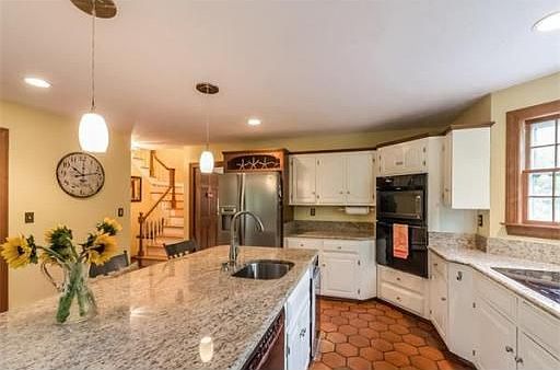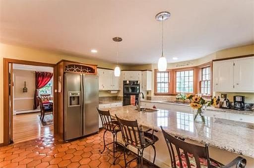 Beautiful colonial on historic River Street. This fabulous home sits on over an acre of land, backs up to conservation area and has an irrigation system. The floor to ceiling stone fireplace is the focal point of the open concept kitchen and family room. The skylights and deck access allow for a great entertaining space. The home has hardwood floors throughout, upgraded kitchen counters, double wall oven, wine fridge, and a walk in pantry.