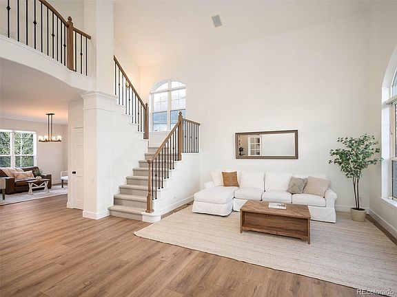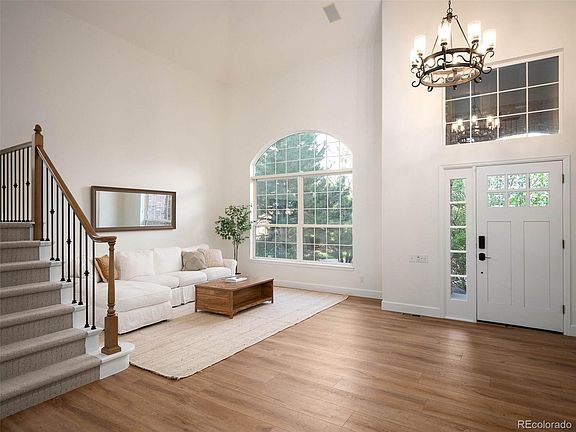 This stunning Castle Pines home brings sophistication and modern design together flawlessly with $250k in upgrades! Recently updated, every last detail has been carefully considered to provide a truly immaculate living experience. As you enter, you are greeted by a bright and airy 2-story living room with sleek white walls and gorgeous Goldin Oak Cortec engineered hardwood flooring. The kitchen is a true standout feature, having undergone a full remodel with custom two-toned cabinetry, gold hardware, and a beautiful hand-crafted vent hood featuring a stunning pop of mosaic tiling. The L-shaped island is perfect for gathering family and friends and opens seamlessly to the family room, which is flooded with natural light from a wall of windows. On the main level, you'll also find a charming dining room, convenient half-bath, laundry room with built-in shelving, and a delightful home office with south-facing windows. Upstairs, there's a primary suite and three additional bedrooms, all featuring the same luxurious Goldin Oak flooring found on the main level. The primary suite is truly an oasis, with a sizable walk-in closet and spa-like bath featuring brand new hardware, light fixtures, and mirrors. Downstairs, the finished basement offers an ideal location for entertaining, complete with a guest bedroom and bathroom with a steam shower. For relaxation, head outside to the peaceful backyard with a hot tub to unwind in. Additionally, this home offers over 1,300 sqft of unfinished attic space, perfect for all-season storage. Boasting an unbeatable location and design, this home is truly exceptional and will exceed your every expectation.