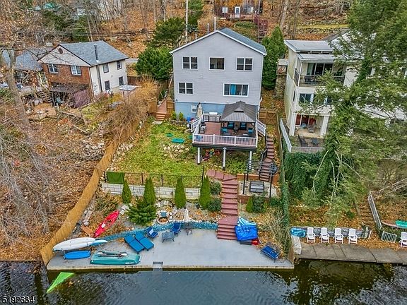 Lakeside living less than an hour from Manhattan! Welcome to lake life in this spacious 3 bedroom, 2 1/2 bathrooms custom home with tranquil waterfront views from the living room, deck, patio/dock. Set on a quiet, winding lakeside road, this home offers so much more than initially meets the eye. The interior features an updated kitchen, beautiful hardwood floors, lots of natural lighting & generous entertaining spaces both inside & out. The main living area offers an open, airy layout including a large, sun-filled living room w/beautiful lake views, a dining area, an office/sitting room alcove & a powder room. The open kitchen is outfitted w/granite counters, chic tile backsplash, SS appliances & sleek white cabinets. The lower level encompasses the primary bedroom w/a WIC, 2 additional bedrooms & a full bathroom in the hallway. A spacious rec-room in the finished basement is perfect for entertaining w/a full bathroom/laundry room & sliding glass doors opening to the large deck overlooking the lake. Enjoy outdoor cooking & dining on the muti-level deck, go down to the patio to relax around the built-in fire pit right on the water, or go for an evening row on the lake. Bring your waterfront dreams into reality in this move-in ready property situated in a scenic community w/optional membership to Skyline Lakes Beach Club, offering swimming, boating, clubhouse & year-round activities and proximity to major highways, shops, eateries & the bus station w/a park and ride to NYC.
