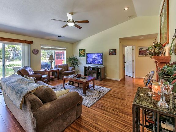 Immaculate 4 bedroom, 2 bath home that is ready to move in. This single story home boasts charm, ample windows bringing in an abundance of natural sunlight throughout the home. Also offering stone fireplace, beautiful laminate flooring in every room, new granite counter tops in the kitchen. The living room opens to the large private beautifully landscaped backyard with fruit trees and a private jacuzzi oasis!