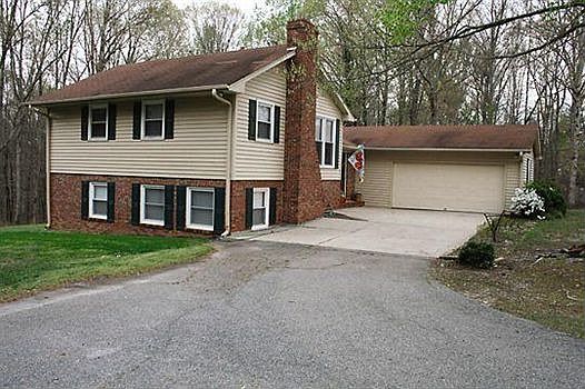 REDUCED $20,000 NEW ROOF! Wooded acres w/creek on back. Property has frontage on Hunters Rd down to the creek. Well maintained home w/lots of space for growing family. Updated Bright Kitchen with a sit down bar area that opens to Dining Area. Lower level has large Den with Brick FP w/woodstove & BR & Full Bath. 687 sqft gym in basement, not in square footage. 640 Sqft workshop w/concrete flooring & 8ft shed. All vinyl trim w/tilt-out vinyl windows, no maintenance.