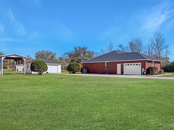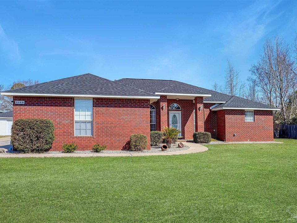 OPEN HOUSE 3/30 10-12PM***Welcome to your spacious retreat in Pace, FL! This charming 3-bedroom, 2-bathroom home sits on a generous .75-acre lot, offering ample indoor and outdoor space. As you step inside, you're greeted by a bright, inviting living room perfect for relaxing evenings with family or friends. The formal dining room sets the stage for elegant entertaining, while the adjacent office area provides a quiet space for productivity. The heart of the home lies in the kitchen, complete with a dining combo, island, and pantry, giving plenty of storage and space. The primary bedroom is a true sanctuary, boasting generous proportions and featuring two closets for ample storage. The attached primary bath offers double vanities, a luxurious garden tub, and a separate shower, providing the ultimate relaxation and convenience. Two generously sized additional bedrooms offer comfort and versatility, accommodating guests or family members with ease. With this home having a split floor plan, the additional bedrooms are situated on the opposite side, maximizing privacy and functionality. Outside, the covered patio beckons for outdoor gatherings, overlooking the expansive backyard with endless possibilities for recreation and enjoyment. Additionally, the property includes a sizable shop with an attached covered parking area, providing ample space for hobbies, storage, or workspace. This home is located in the desirable Pace area and offers a perfect blend of comfort, convenience, and charm. Don't miss your opportunity to make this your slice of paradise!