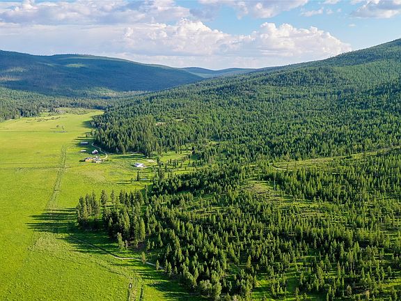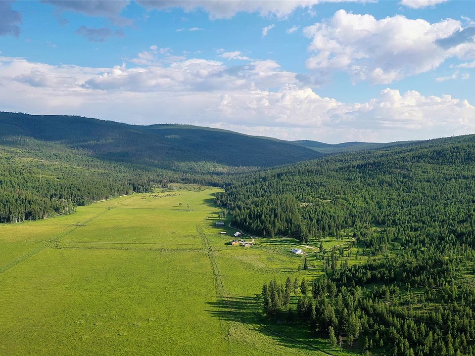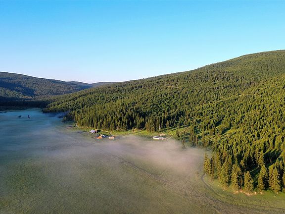 Tucked away in a pristine valley just outside of Kalispell, you’ll find Browns Meadow Ranch – a classic high-meadow mountain ranch consisting of 590+/- acres of productive flood-irrigated farmland and timbered mountainsides. The ranch is exceedingly private, with an end-of-the-road feel and location in a secluded valley yet remains accessible and proximate to both Kalispell and the rich recreational resources found throughout the Flathead Valley. Browns Meadow Ranch is productive and well-watered and includes over a mile of year-round Mount Creek, a pond, and numerous spring seeps within the forested draws. With water rights dating back to 1936 and excellent soil quality, the ranch produces over 400 tons of natural grass hay without the use of fertilizer. The ranch features a charming, updated home in a private location.  The wrap-around covered deck provides a perfect view of the fields and allows you to watch over the wildlife and take in the majestic views of the surrounding mountains. Additional structures include two shops, a detached garage, and several historic hay and storage buildings. There is room for expansion with numerous building sites throughout the forested areas that amplify the mountain and meadow beauty while providing big views of the distant snow-capped peaks of Glacier National Park.
