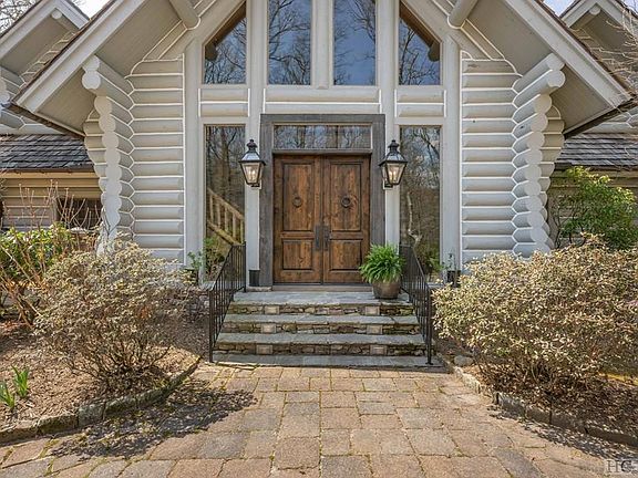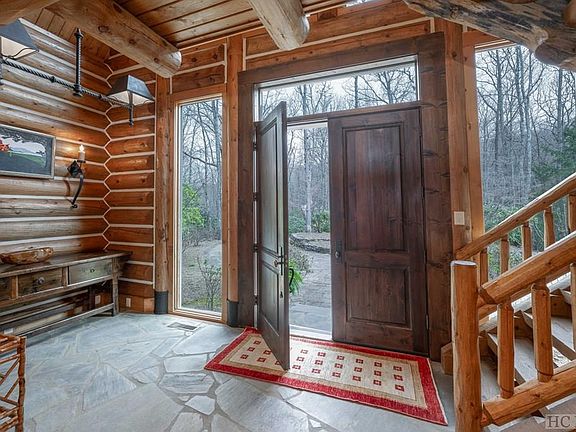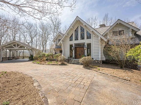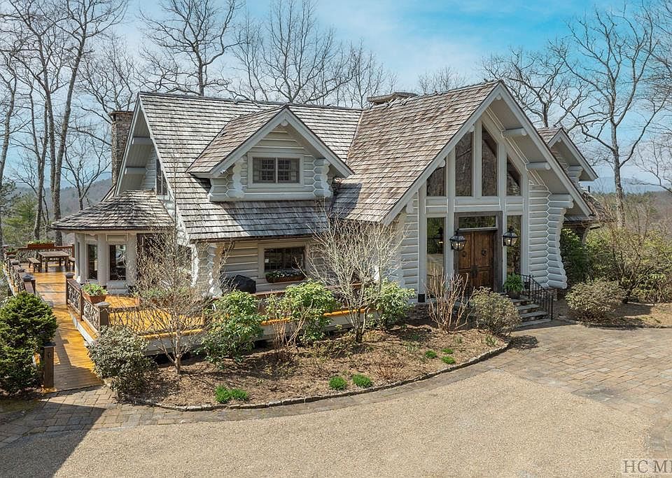 Nestled on over 67 acres of verdant landscape, just a whisper away from the charming town of Cashiers and the tranquil shores of Lake Glenville, NC, stands a majestic Rocky Mountain log home poised for its next grand chapter. Crafted from the sturdy timbers of ancient forests, this residence exudes an aura of timeless elegance, seamlessly merging with the natural splendor that surrounds it. As you step into the expansive great room, your eyes are drawn to the towering stone fireplace, framing panoramic views of the mountain ranges stretching before you. Venture onto the spacious decks that wrap around the home, offering vistas that seem to touch the very essence of the landscape. Listen closely, and you'll hear the gentle trickle of running water features adding to the harmony. A spacious kitchen and dining area await, nestled beside both the great room and a charming three-season room, where a fireplace and awe-inspiring mountain panoramas await. The luxurious main-level owner's suite beckons with its own stone fireplace, while upstairs, two generously appointed guest ensuites and a loft provide luxurious retreats for visitors. The lower level offers an expansive gathering area, two additional guest ensuites, and a deck perfect for creating cherished memories with loved ones. The sprawling estate unfolds like a natural wonderland, with moss-covered trails winding through tree-canopied groves. Follow these gentle sloping paths to discover hidden treasures—a breathtaking waterfall cascading into a serene meadow, a charming treehouse, and crystalline streams inviting you to dip your toes into private swimming holes. This is more than just a home; it's a sanctuary-a place where grandeur and tranquility intertwine, offering endless opportunities for creating a legacy that will endure for generations. The possibilities, including the option for subdivision, are as vast and varied as the landscape itself, awaiting those with the vision and passion to bring them to life.