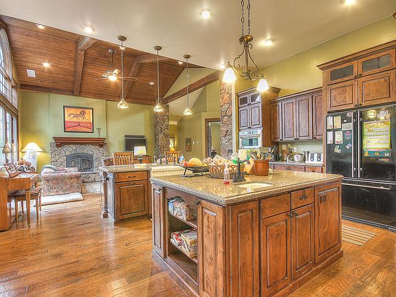Gorgeous 5 bedroom, 6 bath home with beautiful curb appeal. Double door entry leads to great room with wood beamed ceiling, stoned entry and fireplace with a wall of glass doors. Basement has bonus game room/family room and loads of storage. Gourmet kitchen w/stoned hood surrounding gas cooktop, island, walk-in pantry, wall oven, breakfast bar and nook, and alder cabinets. Accents of stone and wood is t/o the home. Extended covered patio and deck looks out to the forest.