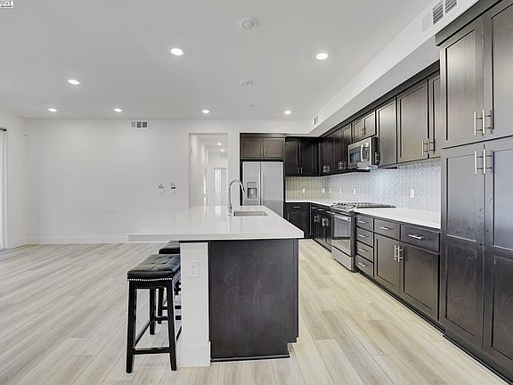 Experience the perfect blend of luxury, comfort, and convenience in this exceptional corner unit in Warm Springs, boasting serene hill views. Spanning a spacious 1,279 sq. ft. of single-level living, this home features two generously sized bedrooms, two beautifully designed bathrooms, and the added ease of elevator access. Immerse yourself in an active lifestyle with top-tier community amenities, including a park, BBQ areas, gym, pool, play structures, and bocce ball courts. Take pride in sustainable living with Tesla Solar, seamlessly integrated into your home, delivering environmental benefits and lower utility costs. This home features seven owned solar panels. Enjoy the convenience of a private garage, ample guest parking, and a prime location between I-680 and I-880. Just a short stroll to the Warm Springs BART station, this property offers effortless commuting and connectivity. Don’t miss this rare opportunity to own a home that combines style, sustainability, and a coveted location.