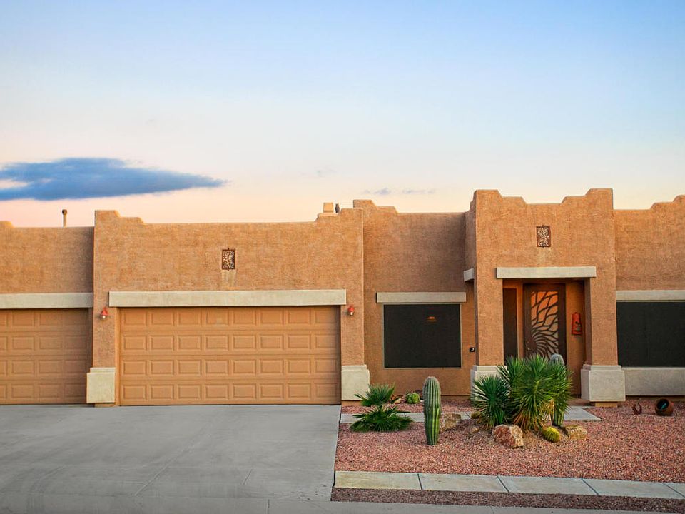 Pride of ownership is obvious in this IMMACULATE 3BR/2BA home perched on a RIDGE-TOP lot in GATED River View Estates. Entertainer's backyard w/NO HOMES BEHIND boasts STUNNING mountain & city views, built-in BBQ and elevated fire pit w/banco seating. Built in '03, this LOCK AND GO 1-story features spacious living areas and split BR flr plan. Gourmet island kitchen w/granite counters, stone backsplash and SS appliances including French door refrigerator. Kitchen opens to family room w/fire place. Decorator touches throughout: ceramic tile, sun screens, water soft, security sys and pretty guest BA w/vessel sink. Lighted niches & lux built-ins give this home a CUSTOM look. Master suite has stone walk-in shower and counter tops. 3 CAR GARAGE. Prime foothills setting that's close to everything!