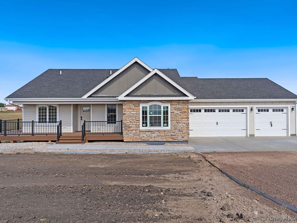 Welcome to one of Cheyenne's newest subdivisions with paved access - Meadowlark Airpark! Milliron TJ Construction presents this new ranch style home on 5.78 acres. The ‘Sage’ has a split bedroom design. Amenities include a spacious kitchen w/granite surfaces, gas fireplace, LVP flooring, 5 piece master bathroom, walk-in closet, vaulted ceilings, unfinished basement, 95%+ furnace, central AC, oversized 3 car garage with 8’ doors & class 4 roof. Horses, 4H projects & outbuildings allowed. The huge wrap-around deck is a must see! Easy directions to the home: Hwy 30 east, turn N/E on Railroad Rd. for 5.7 miles. Turn north on Earhart Dr. into Meadowlark Airpark subdivision. Turn east on Sky Train to the home.