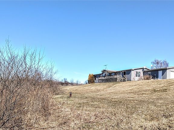 Spectacular Views to the West and the Hills beyond! 3 bedrooms, 2 baths in this beautifully maintained 2006 Commodore Manufactured double wide home with family room , formal dining room, spacious kitchen and breakfast area plus 2 car attached garage. 5 acres of brush and woods for excellent hunting and exploring and camping! Front decking to enjoy the view and privacy. Concrete block foundation (see drawing in attachments) Near area Wineries, Breweries, Distilleries, Keuka Lake State Park. Right in the Heart of New York's Finger Lakes! Delayed negotiations until Monday March 27, 2023 at 12:00 pm - please respect 24 hr notice for showing as property is occupied! Thank you