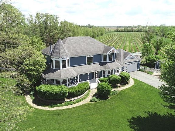 Great Home/Business Investment. LAND-VINEYARD-HOME. Gorgeous Victorian home on 2 parcels of land totaling 21+ acres with a 5 acres vineyard, Will County's only vineyard. Investment opportunity with great potential. Bring your ideas for the use of this outstanding property, with potential for Bed & Breakfast, Wine tasting center and much more... Over 2000 vines growing 11 different varieties of grapes. 2700 sq. ft. processing building with 900 sq.ft. of attic storage space. Climate controlled, fully functional facility which currently produces 2400 gallons of wine. Tractor room, washout room and main facility with front porch entry and 3 overhead doors for easy access to building. You will rename your winery as the current name will not pass with nor be part of this purchase. Your purchase will also include this custom built 2 story Victorian home built in 2001 with custom mill work throughout, 4 total bedrooms, 3.5 bathrooms, large country kitchen with adjacent large open family room. LR/Parlor, which features a stunning custom-built fireplace with amazing craftmanship. Dining room which is currently being used as an office but could easily be converted back to its original use. Home also includes a full finished basement with additional kitchen, full bath, and bedroom and attached oversized 2 1/2 car garage. Outside the house you will find a full 6-foot-deep wrap around porch, 18 X 33 above ground pool with wrap around deck, beautiful, landscaped perennial gardens all around and a fully fenced 1/2-acre yard. Repaved driveway in 2020. Kinetico water treatment system with a Culligan RO system. Low Taxes. Lifestyle and business opportunity lives here.