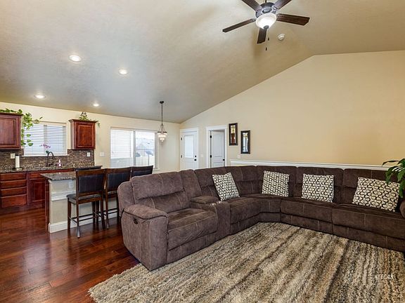 This beautiful Chestnut floorplan has an open layout with vaulted ceilings, cherry wood laminate flooring in the main living area & an island that's great for entertaining. The kitchen has stainless steel appliances, gas range and offers plenty of workspace. The main level features 3 bedrooms along with the laundry room for added convenience! The master bedroom has elegant tray ceilings with plenty of natural lighting & the master ensuite has double vanities, walk-in closet & a jacuzzi tub that will be your oasis! Downstairs, the fully finished basement offers a large family room, two more bedrooms & a full bathroom. The backyard was designed for low maintenance with an extended cement patio that's perfect for your afternoon BBQ's! There's also a covered wood deck & storage shed! The home also has additional cement around the sides of the home and a wide gate for easy access. The front yard has lawn & an automatic sprinkler system. This home is clean, well cared for & move-in ready!