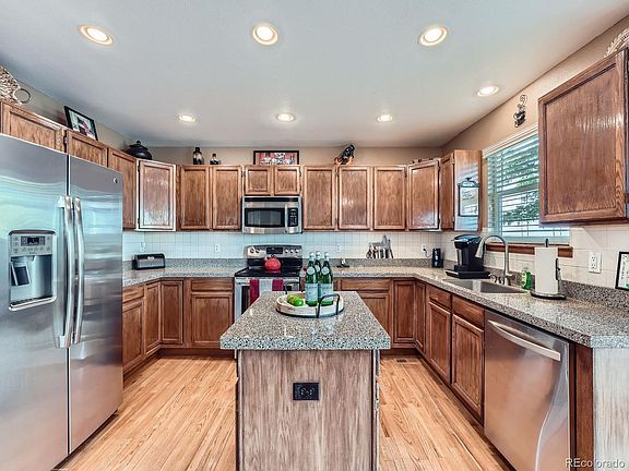 Experience Tranquil Living with Unmatched Views! Welcome to your peaceful retreat, perfectly situated in Highlands Ranch. This beautifully maintained 3-bedroom home backs directly to open space, offering breathtaking, unobstructed views of Chatfield Lake and the majestic Rocky Mountains—a true Colorado dream. Step inside to discover soaring ceilings and a bright, open floor plan designed for both everyday living and effortless entertaining. The updated eat-in kitchen boasts solid-surface countertops, stainless steel appliances, abundant cabinetry and a convenient pantry closet for additional storage. A breakfast bar seamlessly integrates to the inviting living room featuring a cozy fireplace, large windows that flood the space with natural light, built-in cabinetry, and warm hardwood floors that extend throughout the main level. Upstairs, the spacious primary suite is your private sanctuary, complete with vaulted ceilings, a generous walk-in closet, and an en-suite bath with dual sinks, a large shower, and natural light. Two additional bedrooms and a full bathroom, all with stylish laminate wood floors, complete the upper level. The finished basement is a true bonus offering a flexible layout with a game room and family room, ideal for movie nights, hobbies, or hosting overnight guests. One of the standout features of this home is the expansive, brand-new 10'x15' back deck perfect for morning coffee, sunset dinners, or watching the metro area's fireworks displays from the comfort of your backyard. Backing directly to open space and an equestrian park, this home provides rare privacy and direct access to trails and nature. Enjoy all the lifestyle benefits of the Highlands Ranch community, including award-winning recreation centers, pools, tennis and pickleball courts, trails, and more! Close to Chatfield, C-470, shopping and dining! This is more than just a home—it's a lifestyle of peace, beauty, and connection to nature. Don’t miss your chance to make it yours!