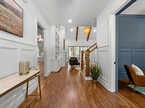 Nestled on a 1+Acre Lot for Immense Privacy and No HOA! Custom Built by Valenti Homes with Upgraded Trim, Designer Lighting & Elegant Finishes Throughout. Main Level Primary Suite & Guest/Study and 3 Car Garage. Wide Plank Hardwoods Throughout the Main Living Areas! Kitchen offers a Large Quartz Island w/Barstool Seating & Cage Style Pendants, Floating Shelves with Surrounding White Brick Laid Tile Backsplash, Custom Ceiling-Height Cabinetry & SS Appliance Package Incl Gas Range w/Quartz Riser & Stained Hood Vent & Huge Walk in Pantry! Vaulted Primary Suite offers Stained Beams, Hardwoods & Accent Trim Wall! Primary Bath features Oversized Dual Vanity w/Quartz, Freestanding Tub w/Trim Wall Surround, Spa Style Tile Surround Shower with Corner Seat & Handheld Sprayer & Huge Walk in Closet w/Triple Window! Family Room with Vaulted Beam Ceiling w/Chandelier, Trim to Ceiling Surround Fireplace w/Flanking Built ins & 4-Panel Sliders to Screened Porch & Grilling Patio! 2nd Floor Recreational Room w/Walk in Closet & Full Bath Access & Spacious En Suite Bedrooms!