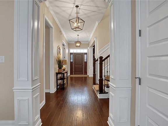 STUNNING & CUSTOM BUILT TO PERFECTION! Discover all the exceptional features & quality craftsmanship at every turn. Beautiful blend of brick & stone exterior w/ timeless traditional floorplan & transitional openness of today's modern design. Gorgeous features include hardwood floors, detailed trim & moldings, wainscoting, tray ceilings & custom light fixtures throughout. Gourmet Kitchen w/ SS appliances, double ovens & lrg center island open to GR w/ lots of natural light & FP. Sunroom with walls of windows & coffered ceiling. Owner's Suite has sitting area & spa like bath w/ lrg WIC shower. LL w/ rec & game area, wet bar, exercise room, BR & BA. Amazing outdoor space w/ covered porch, pergola, beautiful landscaping & water views!