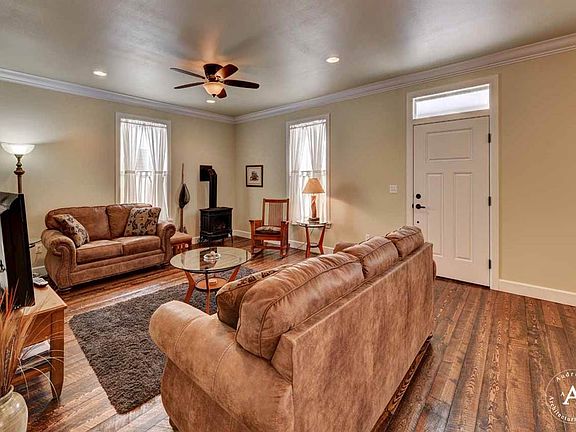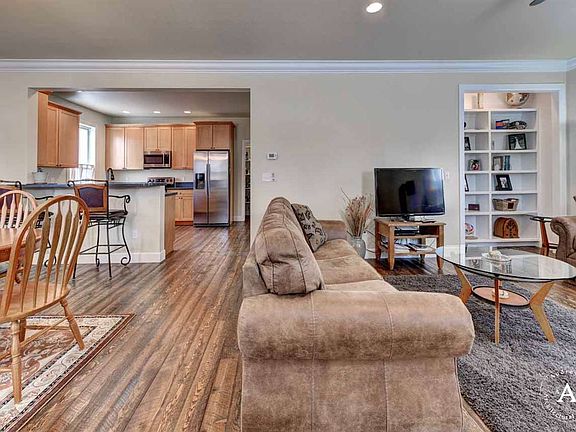 Built in 2015, this beautifully crafted 3 bedroom, one owner home is located in Stone Meadows Subd. Continued improvements include air conditioning, underground sprinklers, sod, trees, curbing and a gas fireplace. The custom fir-wood floors throughout the first floor grab your attention as soon as you walk in the front door. Also an attached, over-sized, finished double garage with alley access & ample off-street parking. Mountain views, acres of open space with trails and a stream are a short walk away.