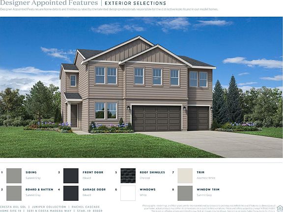 Elegantly designed and exceptionally functional, the Rachel is a single family home perfect for those seeking space and style. Upon entering the two-story foyer with its stunning curved staircase, guests will be greeted by the spacious great room. Adjacent to this impressive living space, the well-appointed kitchen features a large center island with breakfast bar seating, sizable walk-in pantry, and overlooks an appealing covered rear patio, as well as an adjacent casual dining area. Complementing the primary bedroom suite’s generously sized walk-in closet is a spa-like primary bath enhanced by dual-sink vanity, luxe glass enclosed shower, separate soaking tub, along with private water closet and linen storage. Upper level anchored by versatile loft area perfect for multi-generation entertaining possibilities. Front and rear landscape is included. Home is under construction and photos are similar. BTVAI