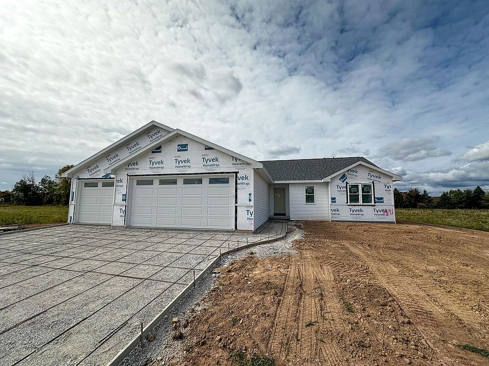 New Construction from Drake Homes. Extra deep 249' lot. This home features a open floor plan with a split bedroom design, plus an office! Kitchen has quartz countertops. LL has egress window and is stubbed for future bathroom. *Photos of similar home. Actual home has white siding* Est completion end of October.