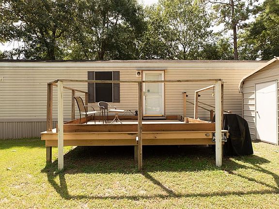 Move in ready! This 2008 model singlewide is ready to welcome the new owners! Situated on a 1/3 acre lot with great trees, this home features a 12x14 front deck, single car garage/secure storage area, double carport and privacy fenced backyard. Conveniently located near Pinehurst off FM 1774, this location offers easy access to Beltway 8, FM 1488 & beyond. This 3 bedroom, 2 bath home offers laminate parquet and wood style flooring in living areas, a custom shiplap wall in the living room and is wired with 3 security cameras for your piece of mind. The backyard is fenced with easy maintenance white vinyl fencing, with both double gates and a single gate for easier access and yard care. In 2016, a new drip style septic system was installed. Washer, dryer and refrigerator are included. Make your move to home-ownership today!