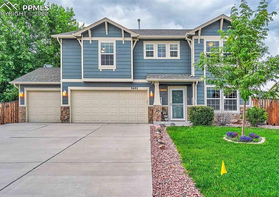 Beautiful Corner Lot in Cuchares Ranch! Well maintained with great curb appeal. The main level has open concept Kitchen/Dining/Living. The kitchen has ample counterspace, plenty of cabinets, stone countertops, an island, pantry & gas range. Also on the main level is an office & a 1/2 bath. Living space is truly extended with easy access from the kitchen/dining to the backyard. The backyard is fully fenced with a large patio, storage shed & a hot tub to relax and enjoy beautiful Colorado! The upper level has 4 bedrooms to include the primary bedroom with adjoining 5pc path & walk in closet. Plus there is a full hall bath, laundry room & a loft space! PLUS this home has central A/C, humidifier & water softner! Conveniently located near Fort Carson, Schriever AFB, Peterson AFB, shopping, parks, schools & every amenity imaginable. Come take a look & be sure to take the 3D Tour!