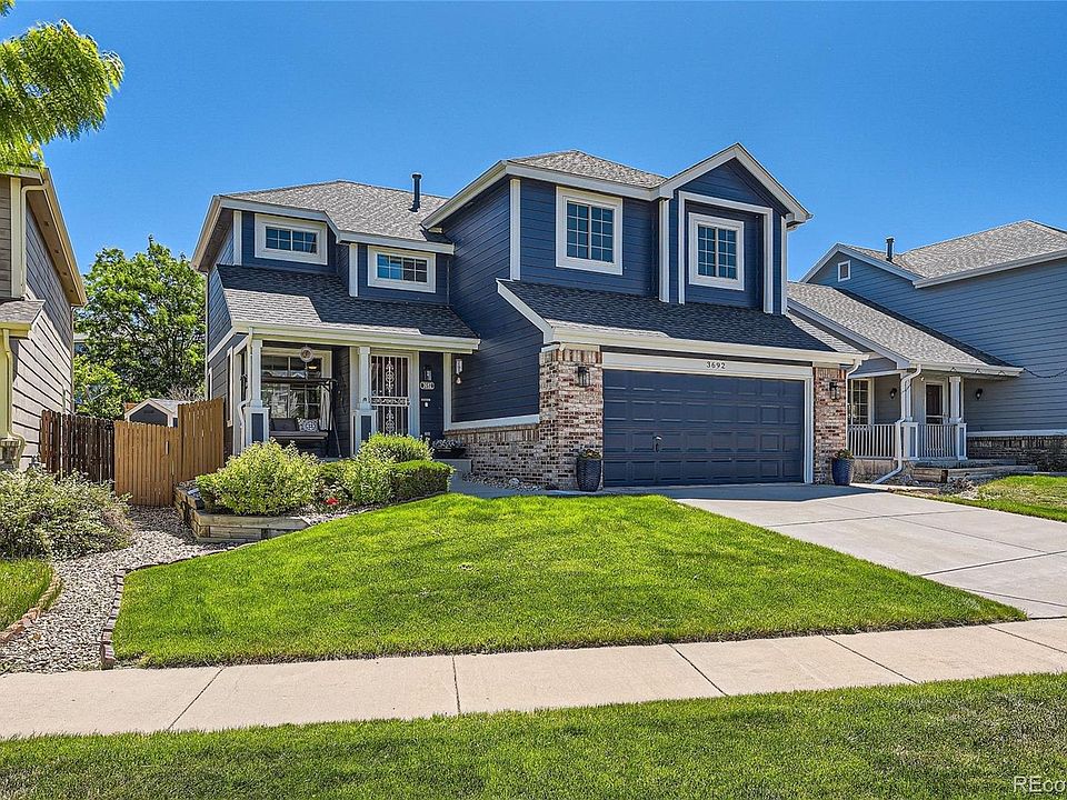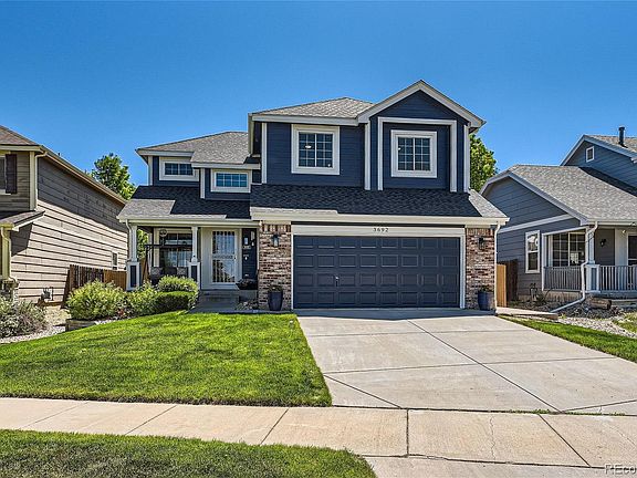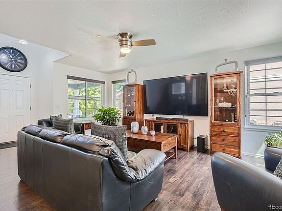 SELLERS ARE OFFERING A $5,000 CONCESSION TO BUY DOWN INTEREST RATE. Welcome home! Improvements galore over $60,000: 2019 New Kitchen & Bathroom cabinets with solid hardwood Cherry fronts & slab granite countertops, 2019 Pergo Outlast laminate flooring on the main & new carpet on the upper floor, 2023 New custom Venetta blinds on the first and second floor (the upstairs blinds are equipped with blackout), 2022 New Triple pane Low "E" windows, 2024 New roof, 2022 New Exterior House paint, 2022 Jellyfish soffit lighting and 2022 Gazebo, 14 x 10, installed on the back patio. Bonus room, in the basement, could be conforming 5th bedroom. After a long day at work, relax on your front porch while breathing in the gorgeous mountain view! As you enter the home from the front door you will notice a vaulted area with a shelf for displaying your art. The living room is open to the dining room & Kitchen. Perfect to share holiday meals with the people that you love! Just off of the dining room is the door to the back yard. You will find an expansive patio entertainment area with a 14 x 10 Gazebo and plenty of space for extra seating & fire pit. It is definitely Barbecue Time!! Beyond the patio you will discover the lawn & a terraced space with roses & other plants. Laundry closet, 1/2 bath and entrance to the garage, just off the kitchen. On the second floor you will find 2 bedrooms with mountain views, a 3rd bedroom that peaks over the backyard and a full bathroom in the hall. The primary bedroom has an attached full bathroom & walk in closet. Let's not forget the basement, with a finished Flex room perfect for a home theater, work out area or if you need extra space for guests there is a murphy bed(included). There is also a large portion of the basement that is unfinished for future expansion or storage/2 egress windows. Neighborhood Park/Playground. Easy access to Buckley Space Force Base, Southlands Mall, DIA, E-470, Plains Conservation Ctr and Aurora Reservoir.