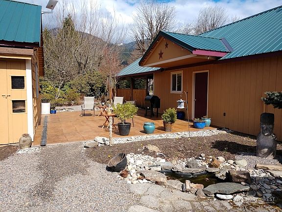 1,100 sq. ft.2 bed 1 bath custom rambler, mountain views, country serenity, on 3.95 acres. Across the new patio there's a 32X24 newly remodeled huge family room/office/DADU with 1/2 bath and kitchen! 17 mature fruit trees, grapes, berries, amazing garden with asparagus bed, raised veggie beds, and a mushroom bed! Wander through the Rhododendron Garden and take lunch beneath the enormous walnut tree, and later enjoy an evening around your backyard campfire or soak in the hot tub. Recently built or completely refurbished outbuildings include a 24X30 barn/shop,12X16 garden shed, 10X20 chicken house, 8X12 greenhouse and custom detached guest bedroom. Must see to appreciate!