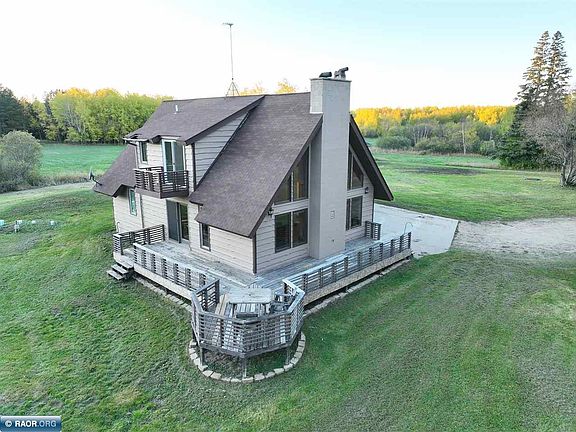 Welcome to this magnificent 38.95-acre 4 bedroom, 3 bath home, just a short 4-minute drive north of Nashwauk. Embrace the tranquility and privacy of this beautiful open concept home, filled with an abundance of natural light streaming through trapezoid windows that frame breathtaking sunrise views. The living room boasts a stunning floor-to-ceiling rock fireplace, providing both warmth and character. Delight in the two upper-level balconies, offering picturesque views, and unwind in the master bath's luxurious jacuzzi. After a long day, retreat to the sauna for ultimate relaxation. This home is a haven for wildlife, making it a genuine slice of paradise. Stay connected with Paul Bunyan high-speed internet with speeds of up to 1 Gbps. Don't miss this opportunity to make this home your own, call for a personal tour today!