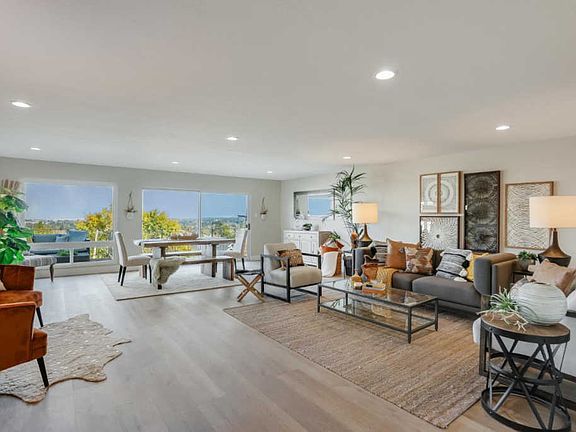 Beautifully updated in Farm Hills Estates bordering lower Emerald Hills! Expansive living room/dining room space highlighted by stunning bay views framed by sliders offering indoor/outdoor access to expansive deck & yard. Updated kitchen with gleaming quartz counters, modern tile backsplash, newly installed stainless appliances, and a charming breakfast nook with view. Main bedroom suite with your own patio, lovely updated en-suite bath, and wall to wall closets. Two additional bedrooms & second full bath with new flooring, quartz counters & tub/shower. Amazing bonus room with patio fireplace, bar, 1/2 bath with shower & laundry room, opening to the patio and backyard. What a wonderful flex space for a 4th extra bedroom, home office or distance learning space! Unique lot size has 4 parking spaces in front plus a detached garage with rear access. Just two blocks to the Peninsula Community Center (swim & tennis), and close to Roy Cloud School, Emerald Hills Golf Course, trails, & more!